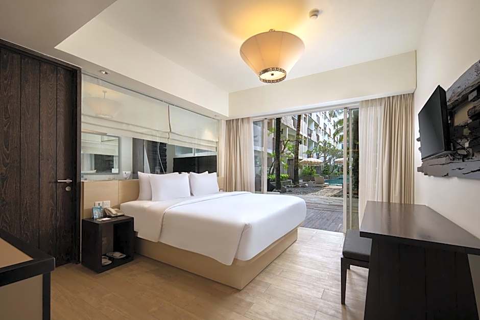 Located on the ground floor with direct access to the pool, this spacious room is furnished with a safety deposit box, mini-bar and flat-screen satellite TV. Guests can relax in the seating area.
